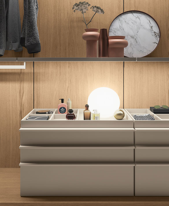 En elegant walk-in-lösning där öppna hyllor och smart förvaring möter en harmonisk och exklusiv rumsupplevelse. Rack Cabin skapar struktur med stil – från vardagens plagg till dina mest personliga detaljer.